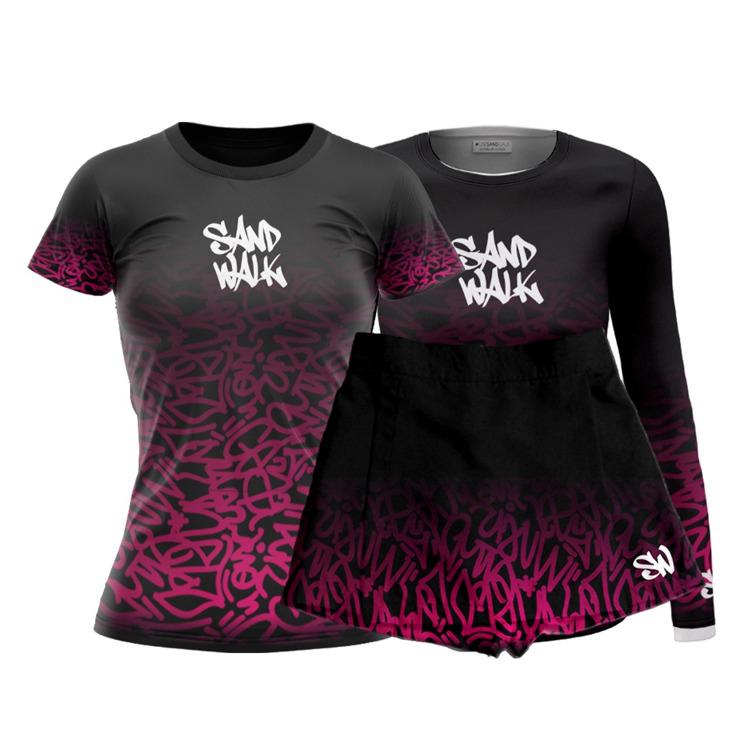Kit Sand Walk feminino com Manga Longa, Camiseta e shorts
